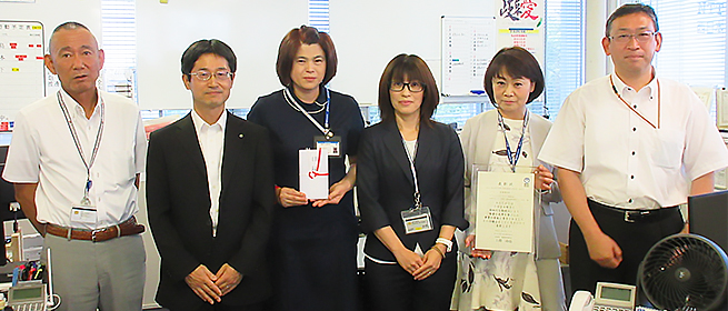 To cultivate awareness toward protection of the environment, NTT West recommends its employees to acquire the eco Test Award (environmental society certification test) (R) qualification that is organized by the Tokyo Chamber of Commerce and Industry. Ms. Kayo Hashimoto, Ms. Miwako Kawai and Ms. Etsuko Kurata from NTT Fieldtechno Tokai Branch volunteered to take part in the "eco-MASTER GRAND PRIX 2017" held on July 23, 2017, and came in ninth place (sixth in the Corporate division) in the national ranking.
