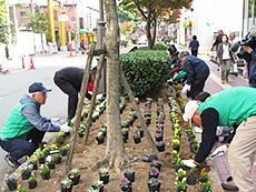 In addition, Kochi Group also took part in the replanting activity for the Obiyamachi Symbol Road flowerbeds on November 14. This was the 27th round of our participation in the same activity. A total of 30 NTT West Group employees as well as retired employees from Kochi area took part in the event to replant 880 pansies and violas, which are beautiful flowers that thrive in the cold winter.