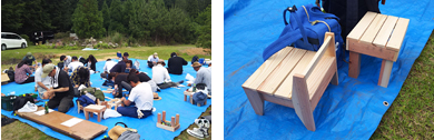 At the woodworking class, a woodwork kit was prepared by the Forest Owners' Cooperative for making chopsticks, chairs and book shelves. The participants relived their childhood as they engaged enthusiastically in making their craftwork. With the participants' laughter echoing through the "Hikari no Mori," we believe they are feeling hopeful about the future of the forest protection activities.