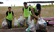 Collecting garbage to restore the clean beach helps to protect the natural environment and contributes toward a bountiful satoumi (local coastlines).