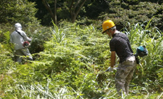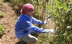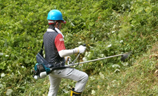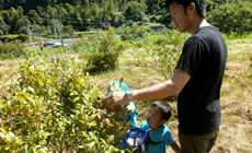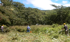 Under the scorching heat on the day of the event, participants engaged in weeding work on the slope using grass cutters as well as work to remove vines tangled around the wire fence using sickles. Meanwhile, those with family members took part in an hands-on experience to harvest blueberries. Work completed smoothly with thoroughgoing measures taken among the participants to prevent heatstroke, such as ensuring adequate hydration and breaks.