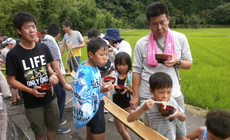 At the end of the activity, the children participants played by the river, while everyone deepened interaction while enjoying somen noodles using the bamboo "somen-nagashi" platform and slider built during last year's activity as well as having lunchboxes together at the community center.