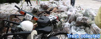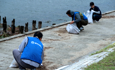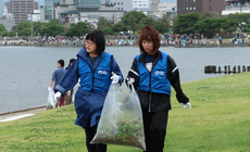 It was drizzling before the activity, but rain stopped when cleaning started. Participants gathered plastic items, waterweeds and driftwood that were washed ashore along Lake Shinji, and picked up litter such as empty plastic bottles and cans in the nearby parks and by the side of the roads. More than 12 tons of litter was collected in total at the end of the activity, which helped to restore the beauty along the shores of Nakaumi and Lake Shinji.
