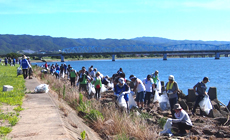 "Kinokawa River Mass Cleaning" is held as part of the "River Conservation Month" in July every year, which was established by the Ministry of Land, Infrastructure, Transport and Tourism. In addition to promoting conservation and restoration of a good river environment throughout the entire basin, the initiative aims to spread public awareness toward river conservation and appropriate utilization of rivers.