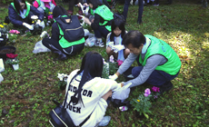 As it had been raining on the previous day, the ground was scattered with wet leaves at the site of the activity, and participants had to perform work on the slippery ground. Nonetheless, it was a pleasant sunny day on the actual day, and participants engaged in the activity while enjoying the autumn leaves that started to change color as well as the scent of the fall season.