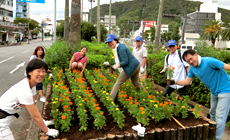 At the end of the opening ceremony, the participants were divided into seven groups, and each group moved to the flowerbeds and planting zones at one of the designated locations, which extended from the front of Tokushima Station to Awaodori Kaikan, and from the front of Awagin Hall to the City Government Office. They then engaged in the planting of 27,000 marigolds (orange, yellow and mixed colors).