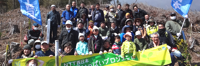 NTT West Oita Group will continue to contribute to the protection of the global environment by engaging in planting and forest conservation activities in cooperation with the local communities.