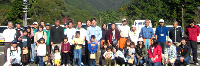 On November 17, 2018 (Saturday), NTT West Kochi Group carried out thinning works at the "NTT Hikari no Mori (Bright Forest)." Marking the 10th round of the activity, the autumn sky was cloudless and weather was stable and warm on the day of the event, which was participated by a total of 47 people who are employees, family members as well as retired employees of Kochi Group.