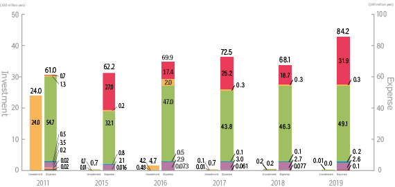 - *Environmental conservation costs refer to the investments and expenses required for implementing corporate environmental protection measures. Investments refer to investments in depreciable assets that are intended for environmental conservation. Expenses refer to costs incurred by environmental conservation activities.
