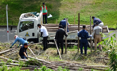 This activity is intended to transform a part of the green belt into a satoyama (village forest) in response to the occurrence of harmful invasion into surrounding vegetation due to the rapid proliferation of moso bamboos, which block off sunlight and cause trees to wither by sucking up nutrients from the soil. Earth Greenery Activities Japan (EGAJ), an NPO, was commissioned by Kumamoto City to hold this activity. This is the sixth time Kumamoto Group participated in the event.