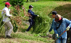It was cloudy on the day of the event, which was participated by a total of about 60 members of Kumamoto Group who engaged in the work together with members of EGAJ as well as those from the local community association.