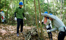 Ground was unsteady in the forest due to the thick piles of dead leaves and participants had to perform work on a steep slope. Nonetheless, following the instructions from the workers, the tree-thinning activity ended smoothly without any injury.