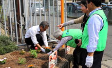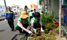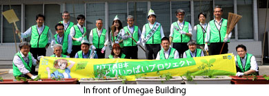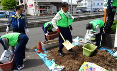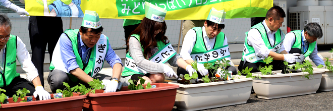 This is an activity to plant creepers and seasonal flowers such as bitter gourd and Japanese morning glory in the surrounding areas and inner courtyard of Kano Building and Umegae Building under NTT West Gifu Group.