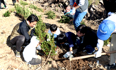 Participants paid careful attention to safety as they had to perform work on unstable ground such as on steep slopes, and completed planting about 700 rhododendron and hydrangea saplings in about an hour's time.