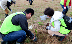 Work was performed in the rain, which started as soon as the activity commenced. Participants who learned the techniques at the demonstration briefing session succeeded in planting close to 300 seedlings, and they will continue to keep track of their growth in future.