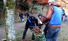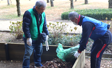 Participants started by spreading fallen leaves and mud stuck in the drains on the hills around the roots of the trees and gathering fallen leaves that scattered along the pavements, followed by picking up trash and weeding at the rest areas and gardens in the park.