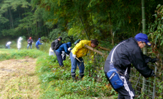 Each participant group was assigned to a different area to engage in weeding work on the slope using grass cutters, work to remove vines that have grown and coiled around the wire fence using sickles, and conducted checks while moving along the wire fence route. Meanwhile, those with family members took part in a hands-on experience to dig up sweet potatoes.