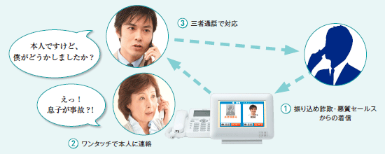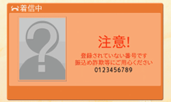 電話機未登録の番号のみを注意喚起の対象とするため、事前に本機器の電話機への登録およびナンバー・ディスプレイ(オプション)の契約、設定が必要です。(ナンバー・ディスプレイのご利用には別途工事費が必要です) |