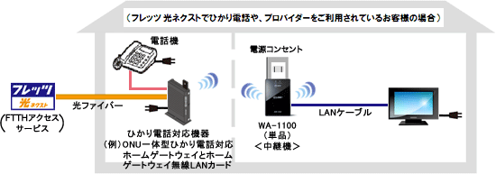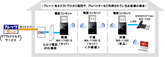 - 光LINK ワイヤレスアダプタWA-1100-Sの増設用子機/孫機としても利用※3できます。