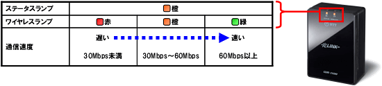 UDP (転送効率を重視したデータ転送方式)、TCP (信頼性を重視したデータ転送方式) ともに最大95Mbpsです。なお、実際の使用環境における保証値ではありません。 (無線LANの通信速度は、有線LANの通信速度に依存します。) |