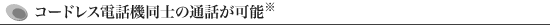 | コードレス電話機同士での内線通話が可能ですので、違う部屋や別の階にいる人とも会話することができ、ちょっとした連絡等に便利です。 |