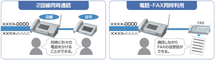 ひかり電話1契約で同時に2回線分の通話ができるので、電話とFAXの同時利用ができます。