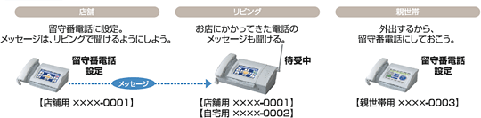 最大5番号使えるので、家族ひとり一人、世帯ごと、電話とFAX等、電話番号を使い分けることができます。また、電話番号毎に留守番電話の設定ができるので、それぞれの都合に合わせて使えます。
