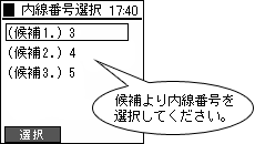 (下図は、内線番号候補3、4、5の中からの内線番号を選択する例です。)