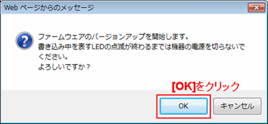 - バージョンアップ開始後、完了の表示が出るまで絶対に装置本体の電源を落とさないでください。途中で電源を落としますと装置本体のファームウェアが破壊され、復旧不可能な状態となる場合がございます。