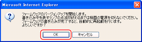 - バージョンアップ開始後、完了するまで絶対に装置本体の電源を落とさないでください。途中で電源を落としますと装置本体のファームウェアが破壊され、復旧不可能な状態となる場合がございます。