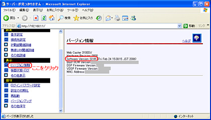 - 再起動が完了したら、設定画面のメニューフレーム「表示」の「バージョン情報」をクリックして、バージョンを確認してください。