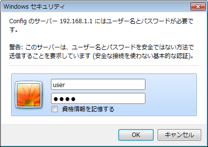 ※ 変更されていない場合は、ユーザ名「user」、パスワード「user」となっています。