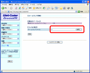 - 【ファイル指定】の「ファームウェアファイル」で[参照]をクリックます。