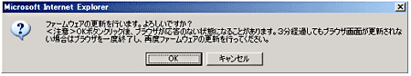 - 「OK」 をクリックします。しばらくすると、Webブラウザの画面に[ファームウェア更新中です。しばらくすると、Webブラウザの画面に「ファームウェア更新中です。1分30秒ほどお待ちください。」と表示されます。