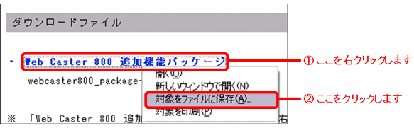 1. 以下の追加機能パッケージを右クリックして、「保存」を選択し、ご利用のパソコンにダウンロードします。