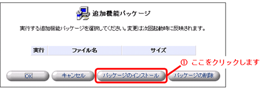 3. [追加機能パッケージ]画面で、[パッケージのインストール]ボタンをクリックします。