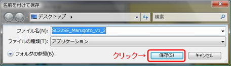 - ダウンロードがはじまり、無事終了すると、指定した場所に「SC32SE_Marugoto_v1_2.exe」が保存されます。