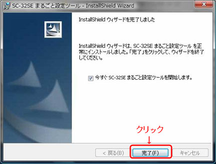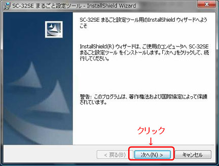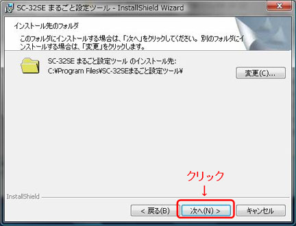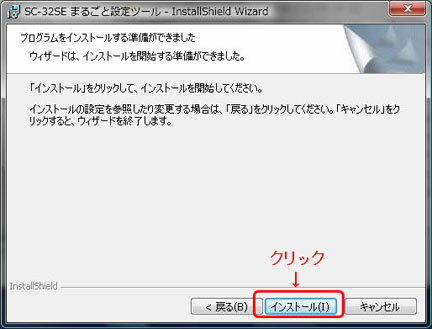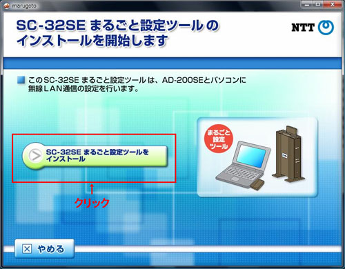 - 「SC-32SE まるごと設定ツールのインストールを開始します」画面が表示されます。「SC-32SE まるごと設定ツールをインストール」をクリックします。