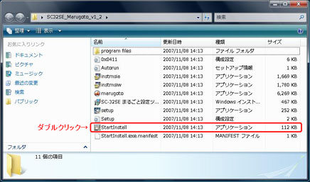 - 「SC32SE_Marugoto_v1_2」フォルダをダブルクリックし、「StartInstall」をダブルクリックします。