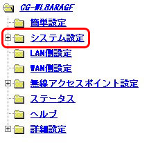 - Web Caster WLBARAGFの設定画面の「システム設定」をクリックしてください。