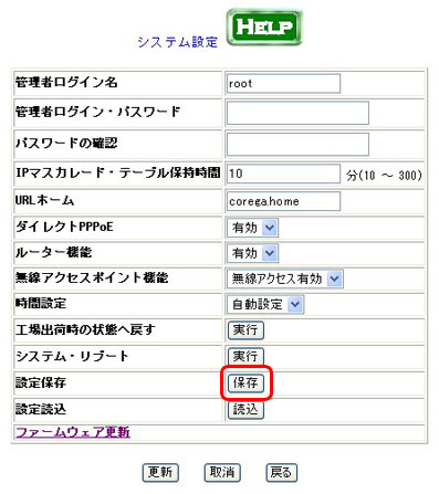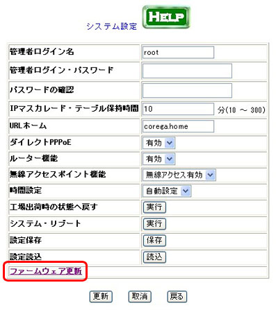 - ファームウェアをアップデートする前に、必ず本商品の設定内容をメモしておいてください。