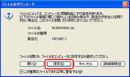 - 「ファイルのダウンロード」ダイアログボックスが表示されたら「保存」ボタンをクリックします。