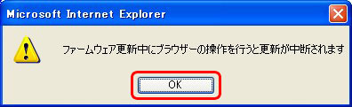※「ファームウェアの更新中にブラウザの操作を行うと更新が中断されます」という表示が出ますが、「OK」ボタンをクリックしてください。