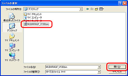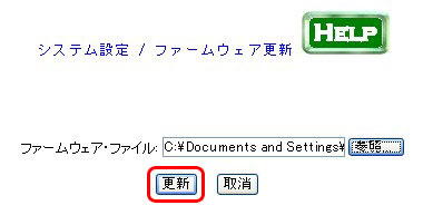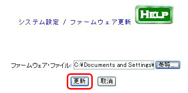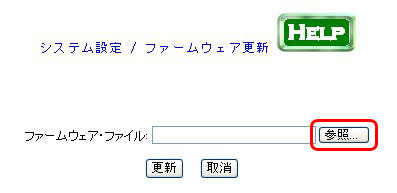 - 「参照」ボタンをクリックしてダウンロードしたファームウェアのファイル(WLBARAGF_V130.bin)を選択し、「更新」ボタンをクリックしてください