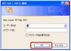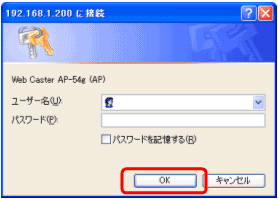 - PCが Web Caster AP-54g のLANポートに接続されていることを確認し、WWWブラウザのURL欄に「http://192.168.1.200」を入力し、Web