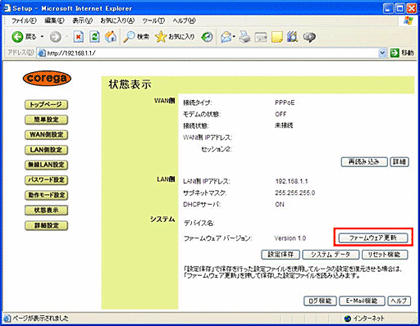 - 状態画面の「ファームウェア更新」をクリックしてください。