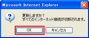 「更新」ボタンをクリックしてください 。「更新しますか?」と表示されますので、「OK」ボタンをクリックしてバージョンアッ プを開始してください。