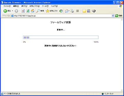• ファームウェアをバージョンアップ中は、他の操作を行ったり、本商品の電源を切ったりしないでください。ファームウェアのバージョンアップに失敗したり、本商品の故障の原因となる場合があります。