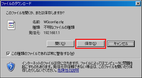 保存をクリックして、任意のフォルダに設定を保存してください。