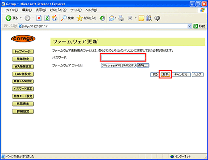 5. 状態表示画面の「ファームウェア更新」をクリックしてください。